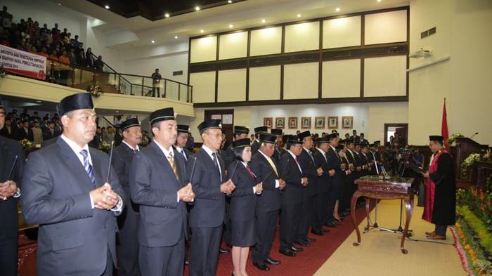 TRIBUN-BALI.COM, DENPASAR - Memakai jas lengkap dengan dasi dan peci di kepala, para anggota DPRD Kota Denpasar tampak begitu berwibawa. Perasaan sumringah menghiasi wajah-wajah mereka usai pelantikan di gedung DPRD Denpasar, Jalan Melati No 17 Denpasar, Selasa (19/8) lalu. Usaha keras mereka untuk menjadi dewan akhirnya kesampaian juga.