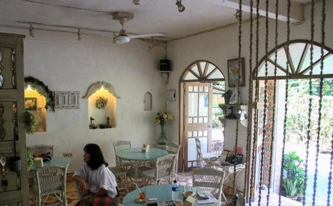 Mulai dari meja, rak, serta kursi-kursi rotan berwarna putih melengkapi tempat ini. Kapasitasnya, menurut Made Soka bisa untuk 20 seat. Tak hanya itu, beberapa pajangan yang diberi label harga juga dapat dibeli oleh pengunjung di sini, tambah Made Soka.