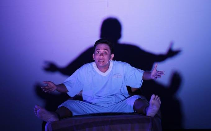 “Karena total tidak bisa melihat saat black out, jadi dimunculkan dua orang yang datang seperti akan memindahkan saya ke sel tikus, tapi sebenarnya itu sengaja dirancang sehingga bisa pindah dalam waktu cepat,” kata aktor yang sudah mulai mengenal teater sejak SMP itu.
