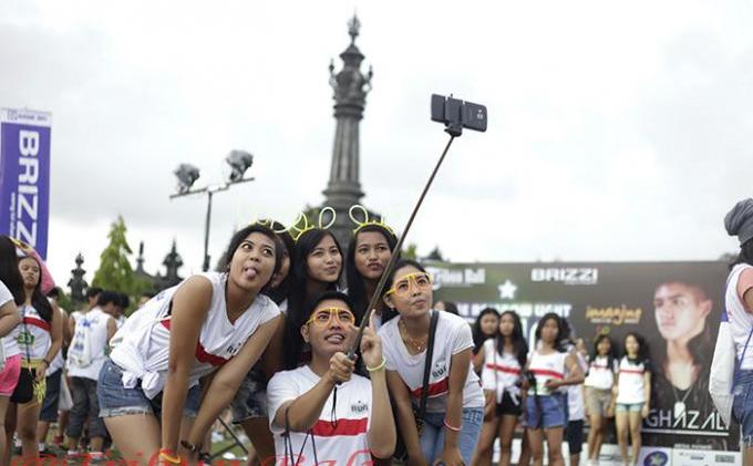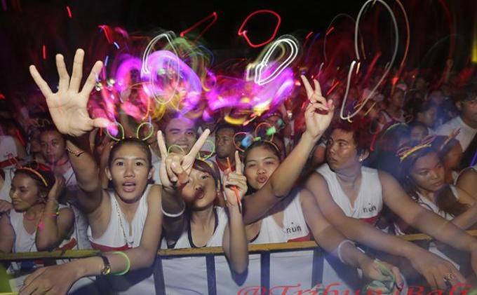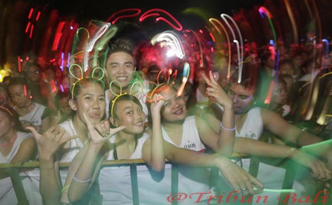 TRIBUN-BALI.COM, DENPASAR - Sebanyak 5.000 peserta yang sebagian besar anak muda sangat antusias mengikuti The Rainbow Light Run Brizzi Tribun Bali, Minggu (30/11/2014) petang, di Lapangan Renon, Denpasar. Para Tribuners bahkan seperti kerasukan saat bintang utama Al Ghazali tampil di panggung.