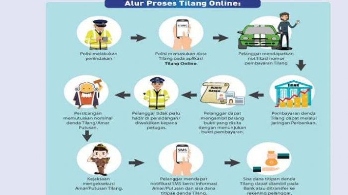 7. Dengan Aplikasi Tilang Online, data pelanggar terkoneksi dengan Kejaksaan dan Pengadilan untuk menyidangkan / menjatuhkan putusan denda (amar putusan), tak hanya itu pelanggaran dapat terkoneksi dengan sistem penerbitan SIM sehingga dapat diketahui pelanggaran-pelanggaran yang pernah dilakukan oleh pemohon penerbitan SIM.