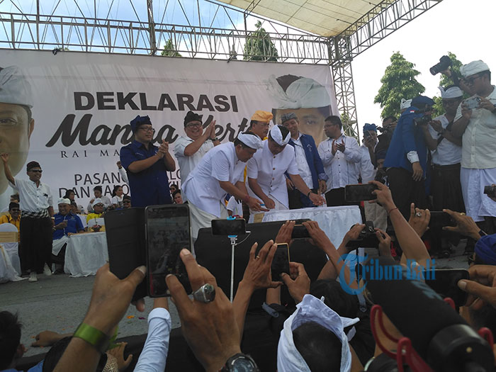 TRIBUN-BALI.COM, DENPASAR - Rangkaian proses pendeklarasian dan pendaftaran pasangan Cagub dan Cawagub Mantra-Kertha ke Komisi Pemilihan Umum Daerah (KPU) membuat para pendukung bersorak-sorak senang.