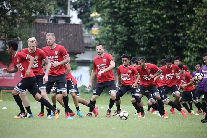 Latihan persiapan ini jelang laga ketiga grup G Piala AFC 2018, kontra FLC Thanh Hoa Vietnam, Selasa (7/3/2018) sore di Stadion Dipta Gianyar.