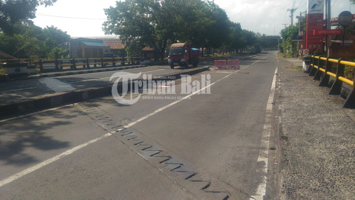 Badan Jalan Tertutup Water Barrier di By Pass Ida Bagus Mantra