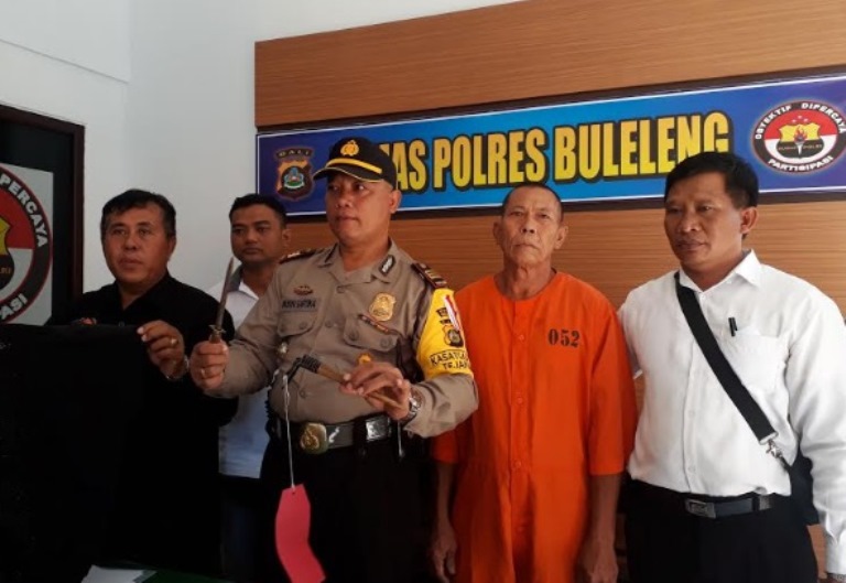 Kakek berusia 60 tahun, Nengah Terak merobohokan dua tetangganya dengan pisau belati berhasil diamankan kepolisian Polres Buleleng. Pekak asal Banjar Dinas Dapdap Tebel, Desa Tembok, Kecamatan Tejakula Buleleng itu menusuk dua tetangganya, Nyoman Suwadi (45) dan Nyoman Sari (44) pada Selasa (5/3/2019) lalu.