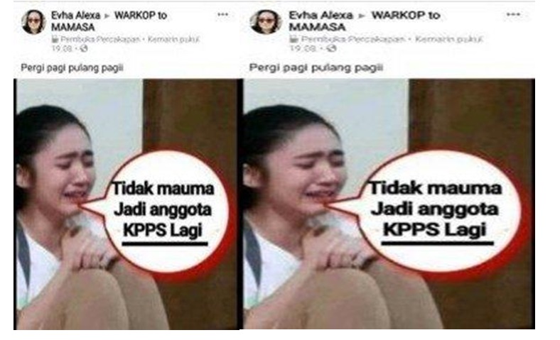 Dalam foto itu tertulis 'Tidak Mau Ma' Jadi Anggota KPPS Lagi'.