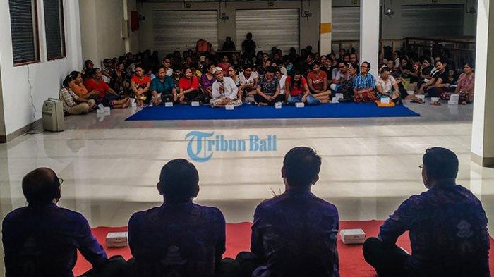 Ratusan pedagang sudah mulai menempati kios dan los, di Blok A Pasar Semarapura, Minggu (21/4/2019)