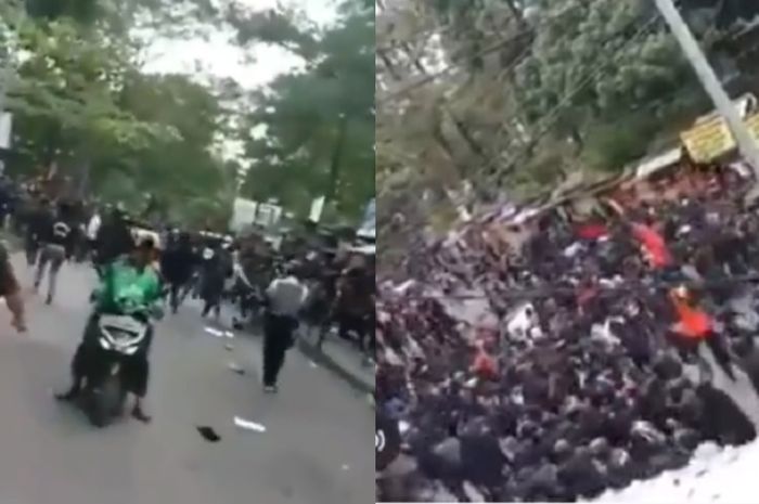 Massa Berbaju Hitam yang berbuat rusuh saat Peringatan Hari Buruh di Bandung, Rabu (1/5/2019)