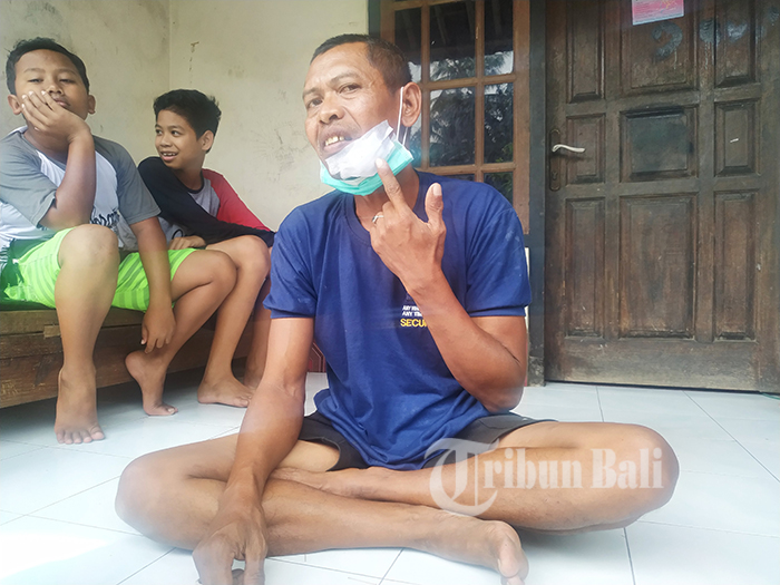 Nengah Sirka (54) saat menunjukan luka di wajahnya akibat diserang anjing liar ketika ditemui di kediamannya di Banjar Gingsir, Desa Akah, Klungkung, Bali, Rabu (22/5/2019). Anjing yang diduga kuat terjangkit rabies itu, juga menyerang tiga warga lainnya.