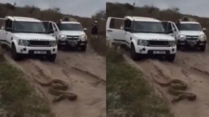 Seekor ular piton raksasa diketahui mengejar beberapa turis yang berlibur di safari Afrika Selatan.