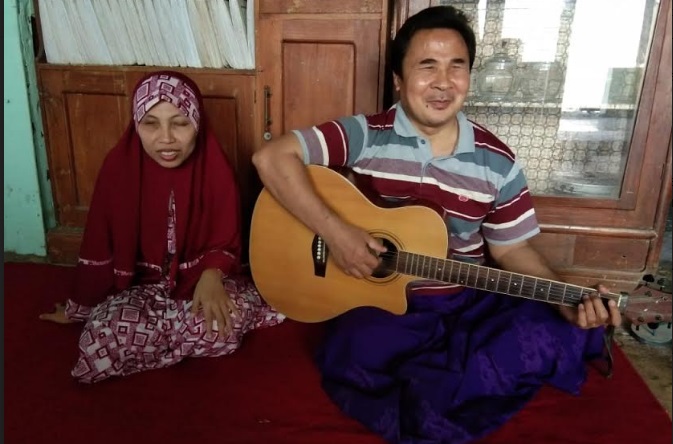 Pasangan suami istri berkebutuhan khusus, Mas Nan (47) dan Susiyati (42) tampak bahagia di tengah segela keterbatasannya.