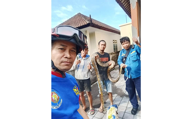 Seekor ular piton masuk rumah Jl Resimuka Barat IX No 8 B, Tegal Kertha, Denpasar Barat.