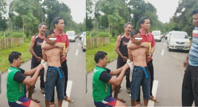 Setelah sampai di lokasi, pelaku masih dalam posisi berdiri di tepi jalan.