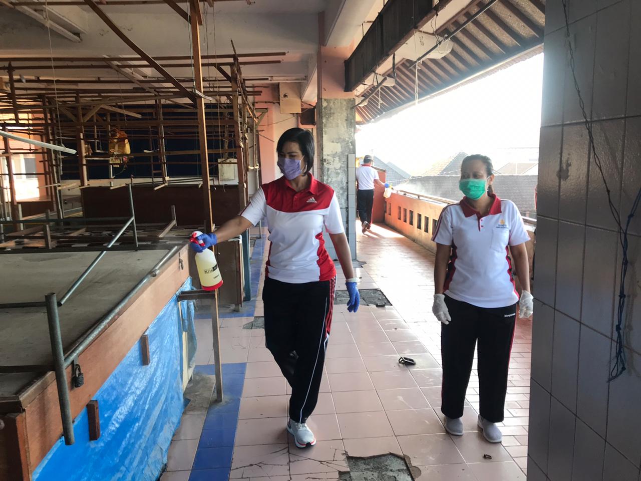 Penyemprotan pun dilakukan menyebar di beberapa titik yang ada di Pasar Beringkit.
