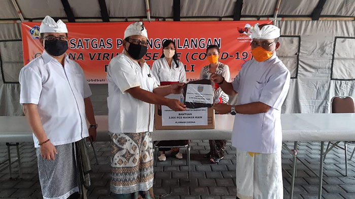 Penyerahkan ribuan masker sebagai Alat Pelindung Diri (APD) untuk menanggulangi pandemi Covid-19 di Bali diterima oleh