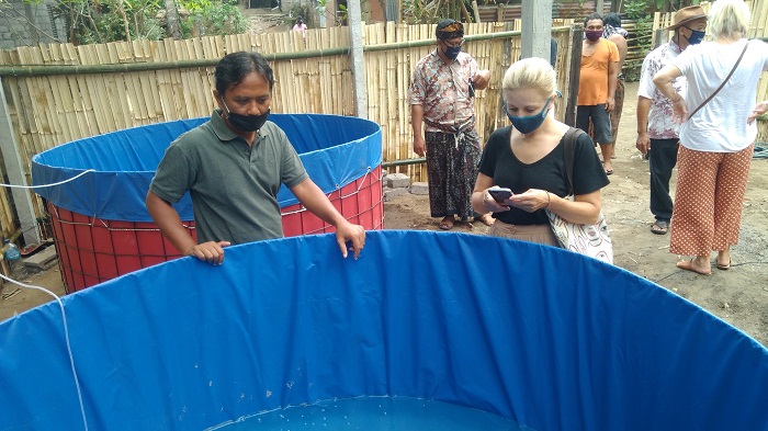 Gede menuturkan, warga setempat mendapat pinjaman lahan sekitar 1 are kemudian dimanfaatkan untuk pembuatan kolam lele terbuat dari terpal berbentuk melingkar dan dilengkapi oksigen untuk treatment, jumlahnya ada 2 kolam.