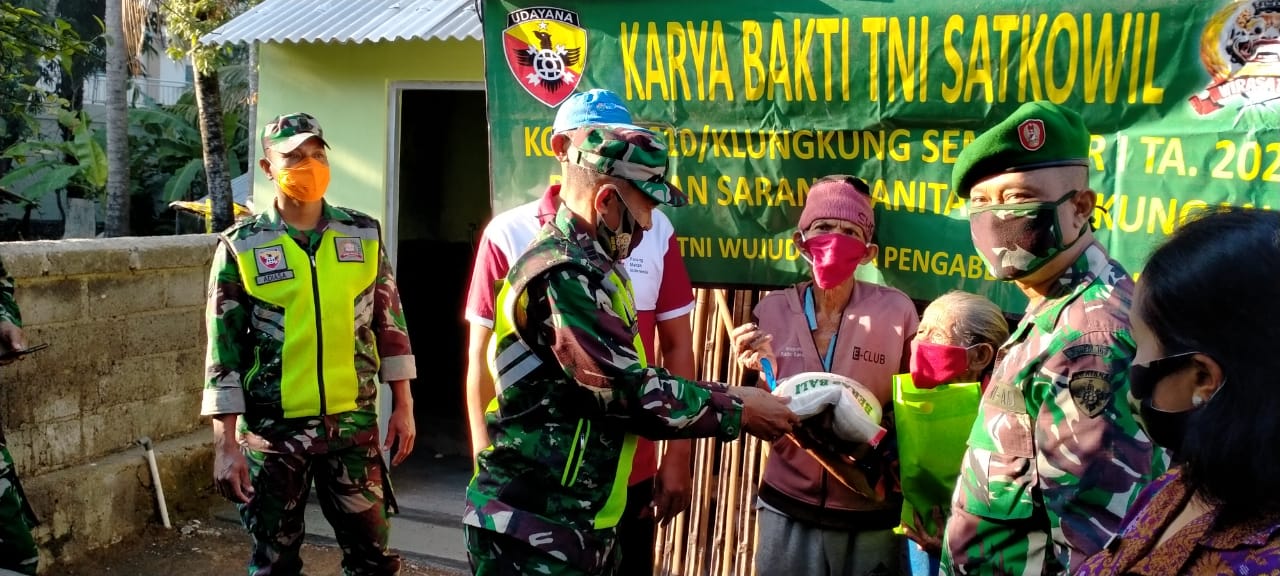 Kodim 1610/Klungkung Serahkan Bantuan Jamban dan Sembako ke Warga Kurang Mampu di Desa Negari