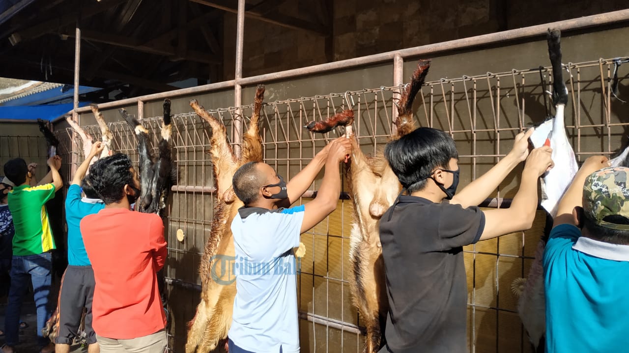 TRIBUN-BALI.COM, DENPASAR - Serangkaian Hari Raya Idul Adha 1441 Hijriah/2020 Masehi, warga dari Lembaga Dakwah Islam Indonesia (LDII) Provinsi Bali melaksanakan pemotongan hewan kurban, Jumat (31/7/2020).