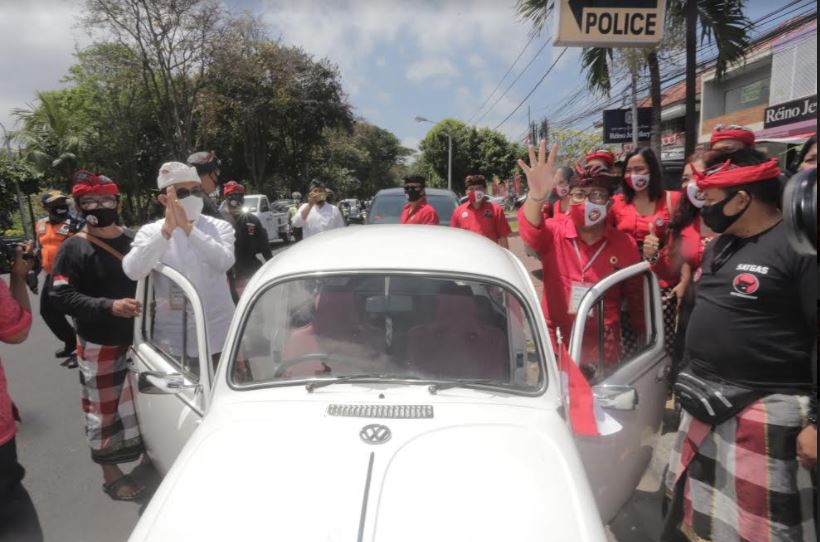 Setelah Sowan ke Rumah Rai Mantra, Jaya-Wibawa Langsung ke KPU Denpasar Naik VW Kodok Putih