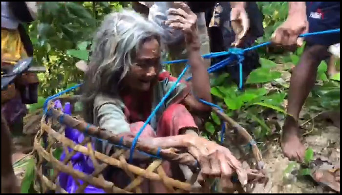 Warga lalu berusaha mengevakuasi dadong Cukri dari dasar jurang dengan mengulurkan keranjang yang sudah terikat tali.