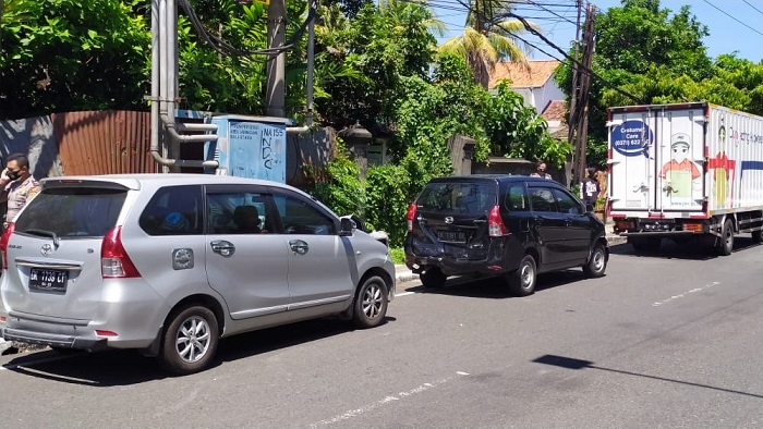 Di depan kendaraan yang akan masuk ke kantor KPU itu ada kendaraan Avanza Silver yang melaju dari arah barat ke timur di Jalan Udayana Kecamatan Negara.