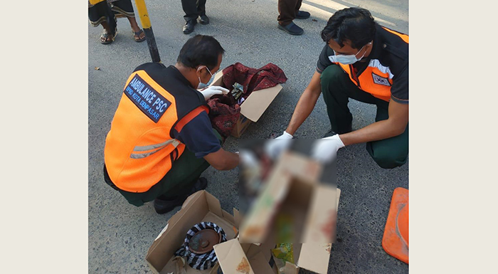 Saksi yang tinggal di Jalan Tambak Sari, Sanur tersebut bahkan menerangkan bahwa kondisi orok bayi saat itu sudah dalam keadaan remuk, karena terlintas mobil.