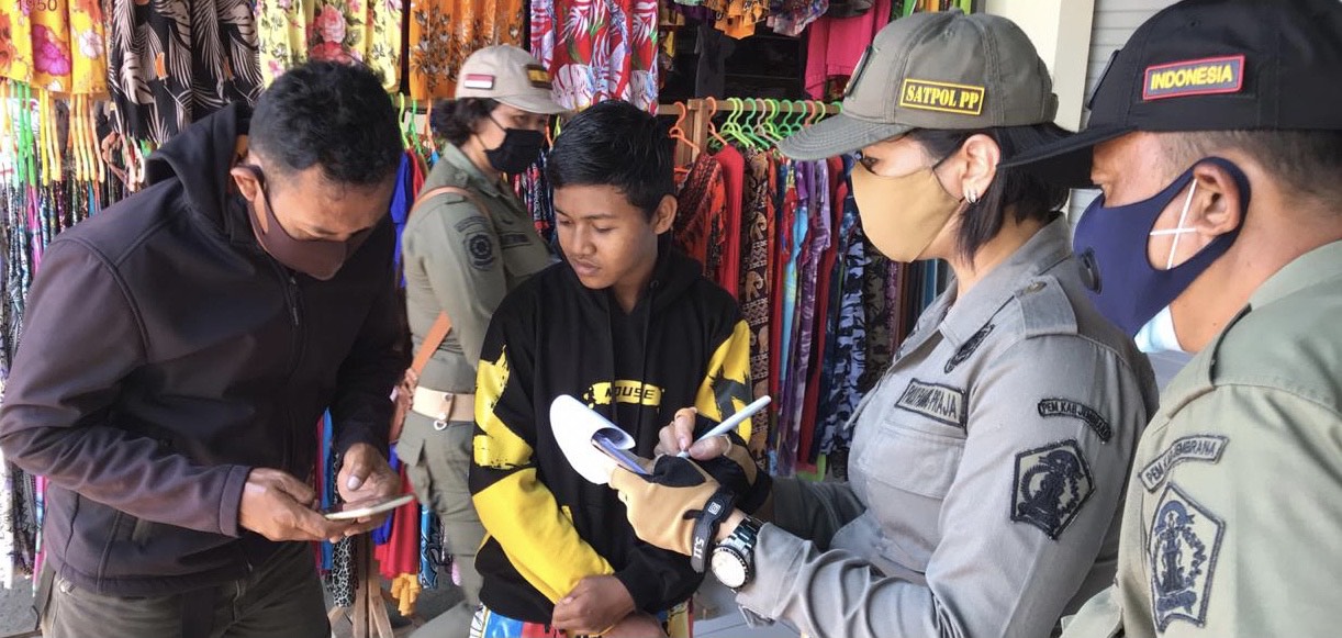 TRIBUN-BALI.COM, NEGARA- Petugas gabungan melakukan sidak penegakan Perbup Nomor 36 tahun 2020, di kawasan Kelurahan Gilimanuk, Kecamatan Melaya, Jembrana, Bali, Selasa (13/10/2020).