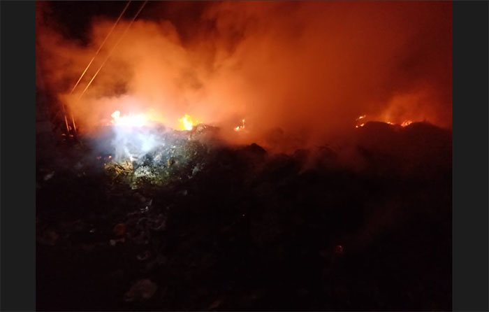 Kobaran api sudah membesar, dan melahap sebagian tumpukan sampah.