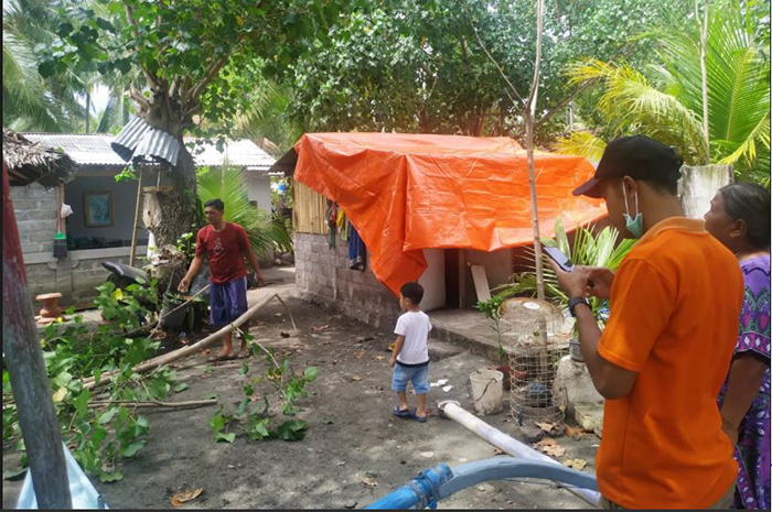 Selain sembako, juga diberikan bantuan terpal untuk menutupi atap rumah warga yang rusak akibat diterjang angin.
