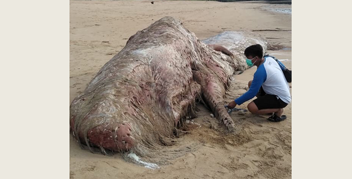 Berdasarkan uji visual, tubuh paus telah membusuk serta seluruh giginya hilang atau tercabut.