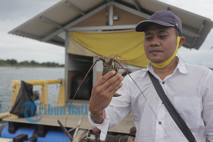Pengusaha di bidang pariwisata, I Putu Darmaya mencoba peruntungan membudidayakan lobster di Dermaga Serangan.