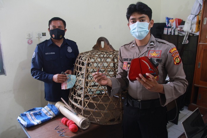 Meski demikian, kepolisian berhasil mengamankan penyelenggara tajen Dewa Putu Angga (49) beserta beberapa barang bukti berupa uang tunai sebesar Rp 1,1 juta, termasuk 1 buah kurungan ayam, 1 buah tas tempat ayam, 4 gulung benang warna merah dan 1 set atau 8 biji taji.
