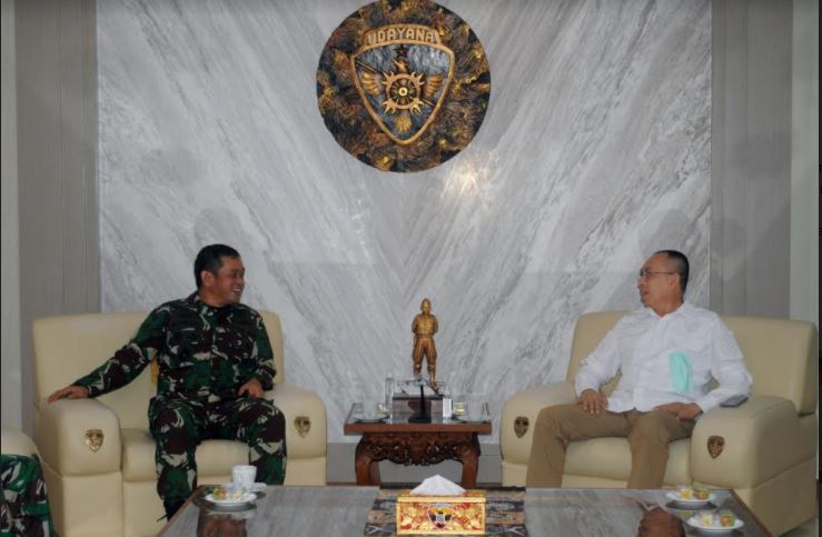 Kedatangan rombongan yang dipimpin Kepala BIN Daerah (Kabinda) Bali, Brigjen Pol Bambang Yogaswara, diterima langsung oleh Pangdam IX/Udayana Mayjen TNI Maruli Simanjuntak di ruang tamu Pangdam IX/Udayana.
