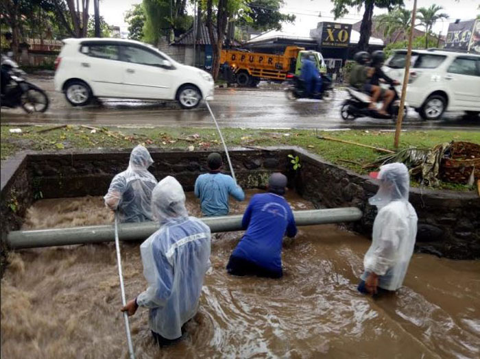 TRIBUN-BALI.COM, DENPASAR – Hujan yang semalam mengguyur Kota Denpasar dan sekitarnya membuat petugas PUPR harus berjibaku membersihkan saluran drainase, pasalnya banyak saluran yang mestinya berfungsi mengalirkan air justru banyak tersumbat oleh sampah.