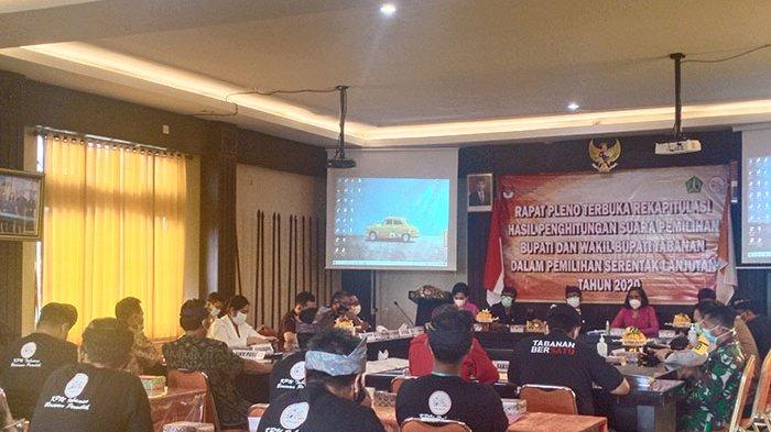 TRIBUN-BALI.COM, TABANAN - Komisi Pemilihan Umum (KPU) Tabanan telah menggelar rapat pleno terbuka rekapitulasi hasil penghitungan suara Pilkada Tabanan 2020 di Kantor KPU Tabanan, Rabu (16/12/2020).
