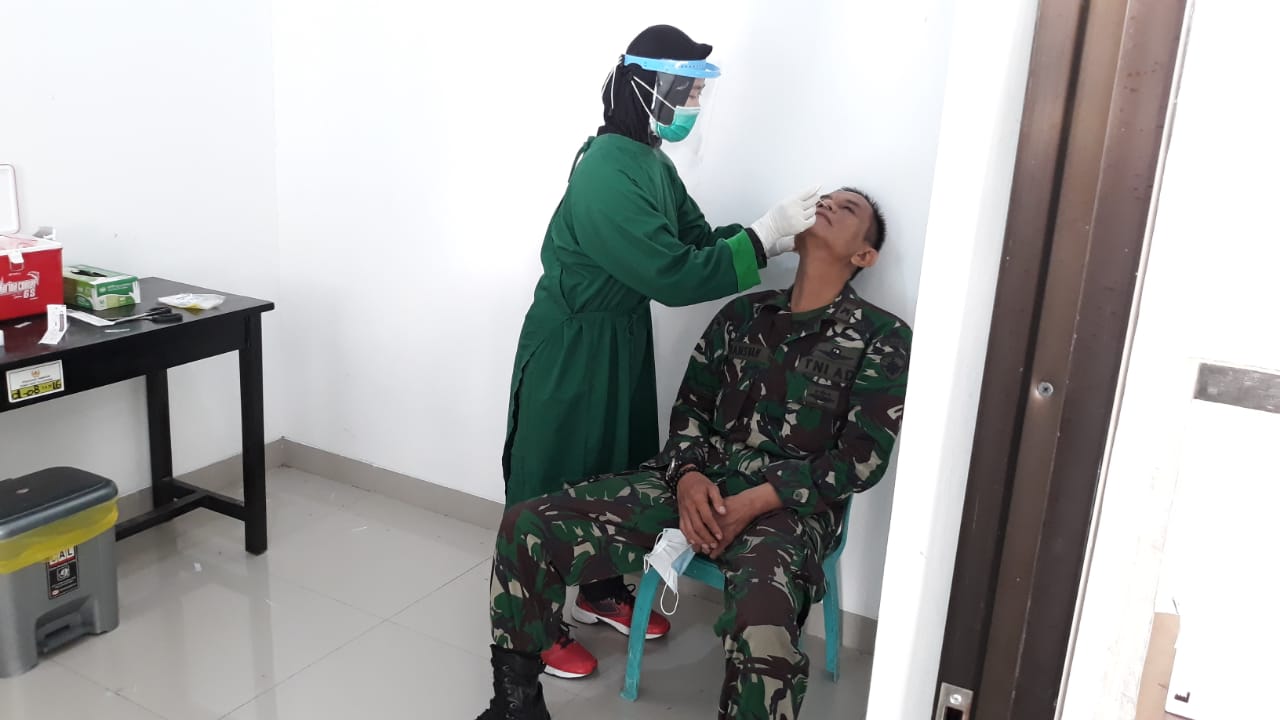 Tes swab PCR difasilitasi oleh Kesehatan Kodam IX/Udayana sebagai tindak lanjut arahan Pangdam IX/Udayana, Mayjen TNI Maruli Simanjuntak, M.Sc.