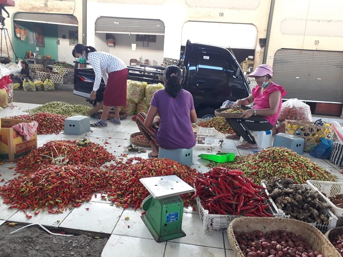" Peningkatan harga cabai dipicu oleh menurunnya produksi di tingkat petani akibat musim penghujan, sehingga banyak buah cabai yang rontok dan busuk. Di samping itu pasokan dari luar pulau terutama dari Lombok dan Pulau Jawa sangat terbatas," ujar Susanta, Senin (28/12/2020).