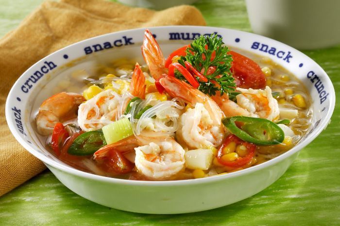 Resep Sup Udang Jagung Manis, Sajian Berkuah Praktis, Sajikan dengan Taburan Daun Bawang