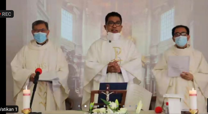 Ketiga imam konselebrans itu berasal dari Indonesia. Misa virtual Buka Tahun Baru Bersama PWKI 250 wartawan dari berbagai pelosok Indonesia.