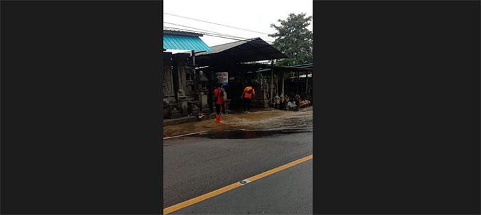 Gorong-gorong di jalan tersebut mengalami mampet, sehingga air hujan meluber kejalan.