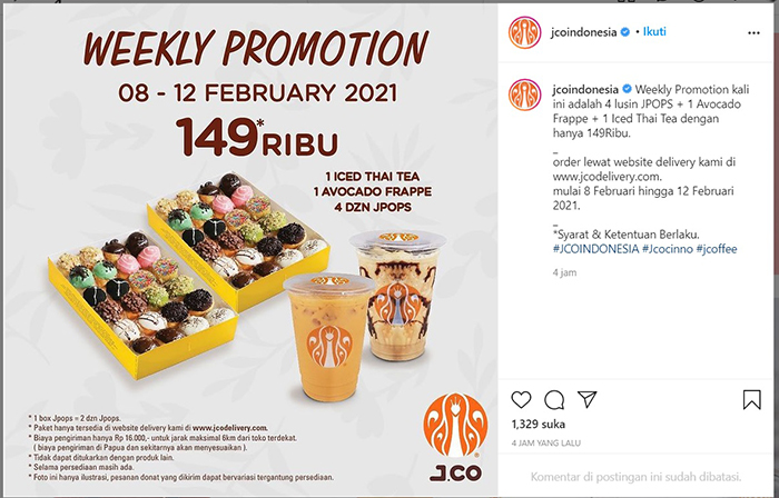 - Promo J.CO berlaku mulai 8-12 Februari 2021.