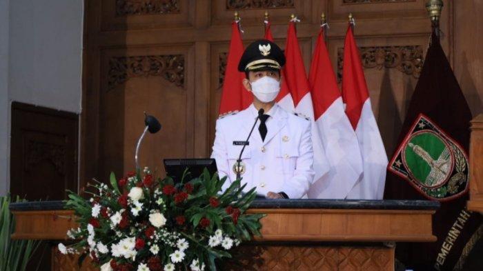 Gibran Rakabuming Raka, menyampaikan pidato pertamanya sebagai Wali Kota Solo di Gedung DPRD Kota Solo, Jumat 26 Februari 2021.