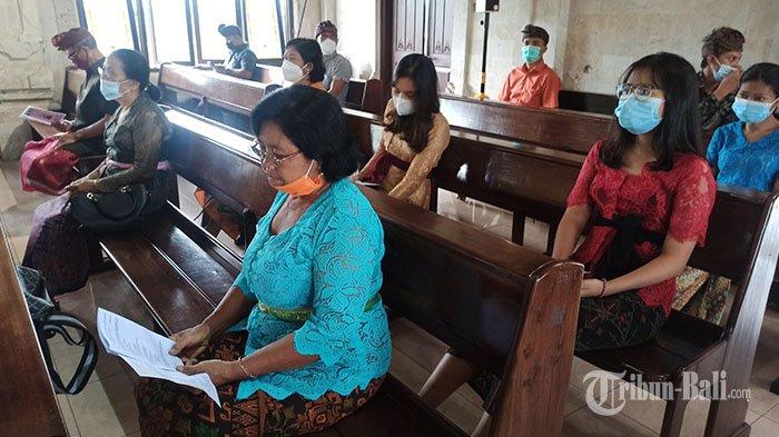 Dari pantauan Tribun Bali di lokasi, jemaat mengikuti kotbah dan doa bersama yang dipimpin Romo Rony Alfredus Bererelo, pukul 09.00 Wita.