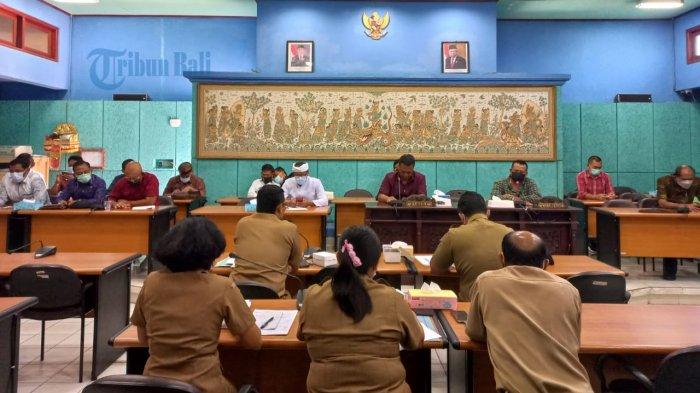 TRIBUN-BALI.COM, SEMARAPURA - Anggota dewan bersama Dinas Koperasi, UKM, dan Perdagangan menggelar rapat koordinasi di Kantor DPRD Klungkung, Bali, Senin 19 April 2021.