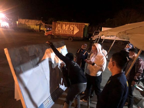 Pendirian papan pengumuman nama korban selamat dan meninggal oleh Polres Jembrana di Pelabuhan Gilimanuk, Selasa 29 Juni 2021 malam.