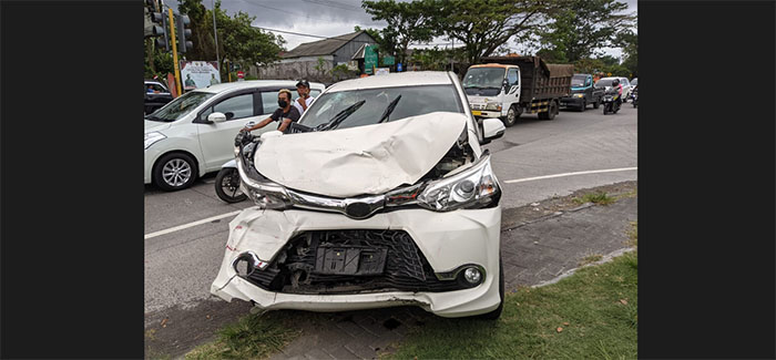 Namun saat itu Mobil Avanza berwana putih yang dikendarai Kadek S A tetap melaju, hingga menabrak bagian belakang mobil yang dikendarai Aris.