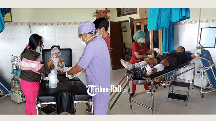 Sebelumnya mereka berdua dilarikan ke Puskesmas Abiansemal lantaran mengalami luka bakar pada bagian tangan dan kaki.