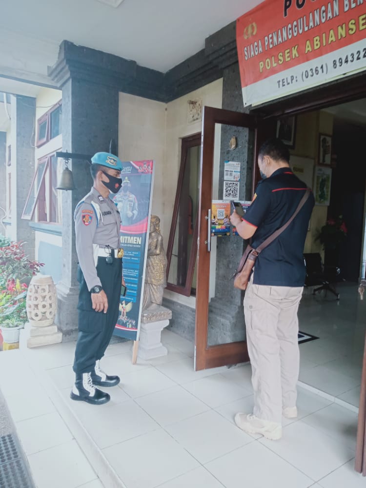 QR Scan Peduli Lindungi dilakukan pada saat masuk kantor Polsek dan juga saat keluar dari kantor Polsek Abiansemal.