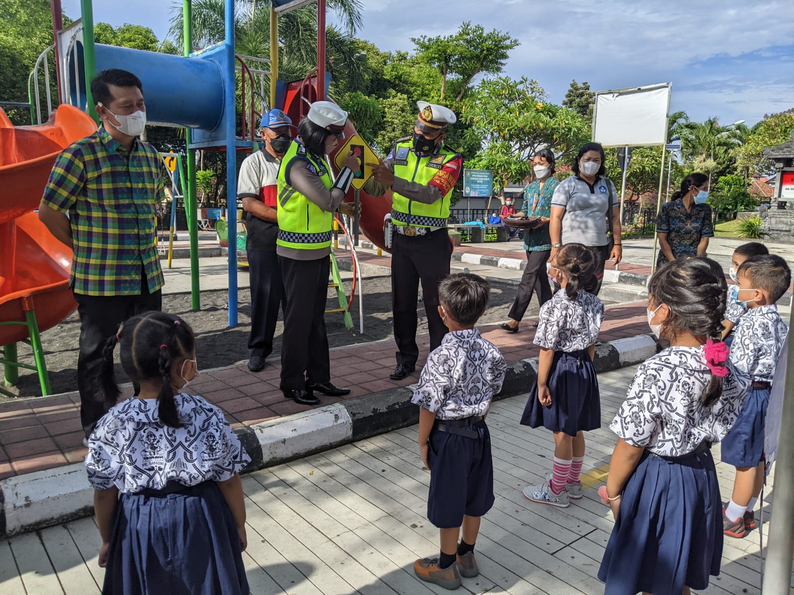 Kegiatan tersebut merupakan bagian dari Program Dinas Perhubungan Klungkung, untuk memperkenalkan anak-anak dengan rambu lalu lintas sejak dini.