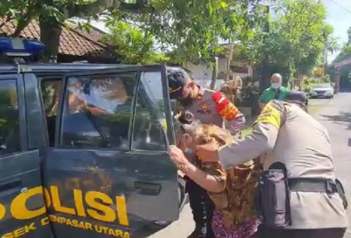 Penjemputan langsung dilakukan Kapolsek Denpasar Utara Iptu I Putu Carlos Dolesgit bersama Bhabinkamtibmas Desa Dangin Puri Kangin Aiptu I Made Loka.